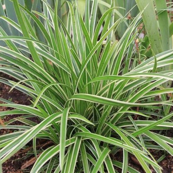 Листья: Листья узкие, изящные, с характерной белой или кремовой каймой, создают эффектный контраст с зелеными центрами, придавая растению декоративный вид на протяжении всего сезона.